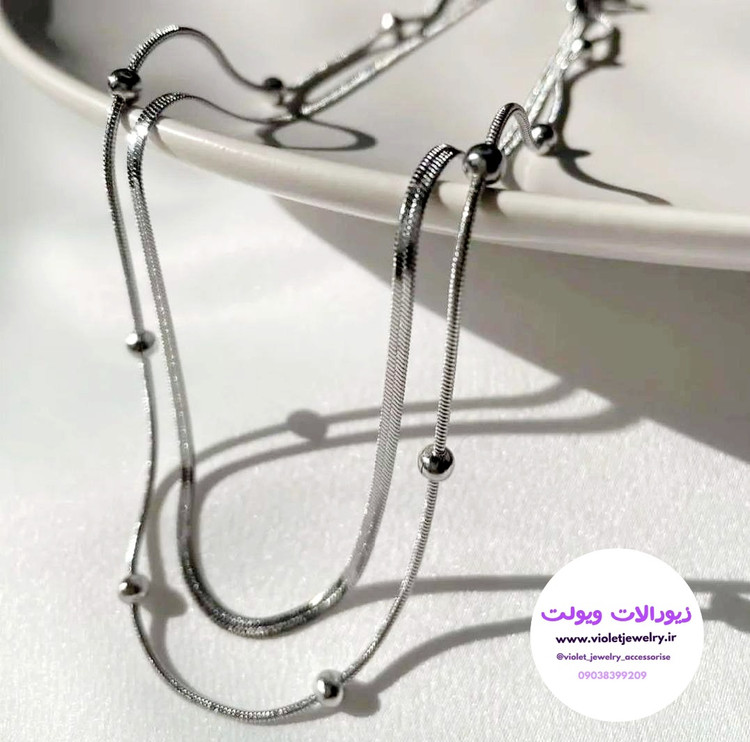 گردنبند زنانه ۲ لاین توپی و ماری استیل در دورنگ نقره ای و طلایی کد ۱۲۱۳۱