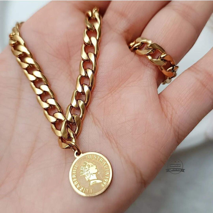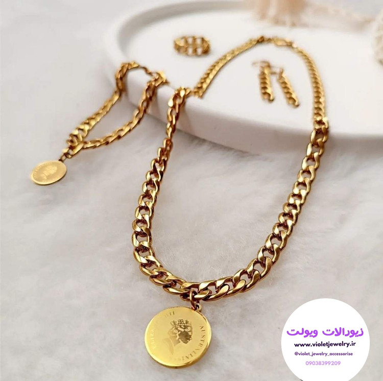 ست زنانه کارتیر با آویز سکه الیزابت جنس استیل رنگ ثابت ضد حساسیت رنگ طلایی جدید و فوقالعاده شیک در صورت تغییر در اندازه ها لطفا در قسمت توضیحات سایز مورد نظر خود را یادداشت کنید