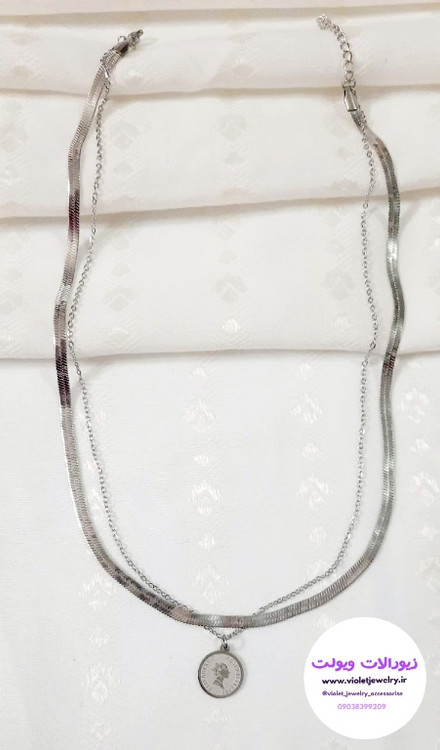 گردنبند استیل زنانه دستساز ترکیبی ماری و زنجیر با پلاک الیزابت جنس استیل رنگ نقره ای ضد حساسیت و رنگ ثابت