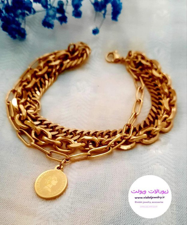 دستبند زنانه طلایی کارتیر ۳لاین فوقالعاده شیک و طرح طلا جنس استیل رنگ ثابت ضدحساسیت میباشد
