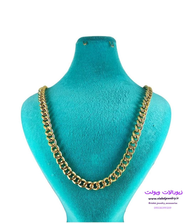 گردنبند کارتیر زنانه ۸ میل به طول ۵۰ سانت رنگ طلایی جنس استیل میباشد