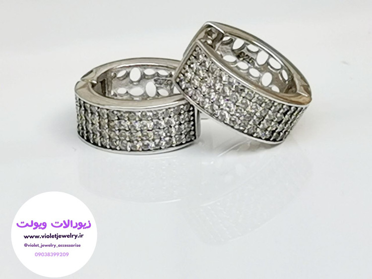 گوشواره نقره مدل حلقه ای نگبن دار ۴ ردیفه وزن ۴.۳ گرم ۱۱ میل کد ۰۳۲