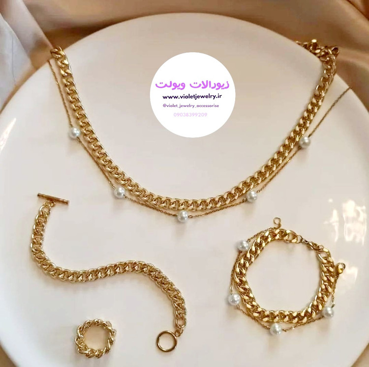 ست فوقالعاده شیک دستساز ترکیب کارتیر و مروارید جنس استیل و رنگ ثابت