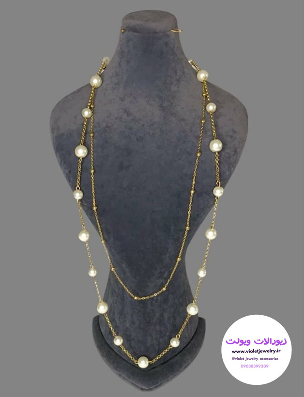 گردنبند مرواریدی و توپی جنس استیل طلایی کد ۱۲۱۶۰