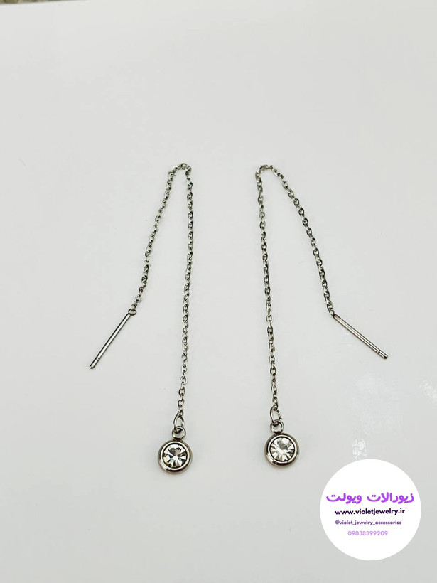 گوشواره بخیه تک نگین جنس استیل نقره ای کد ۵۵۲۱