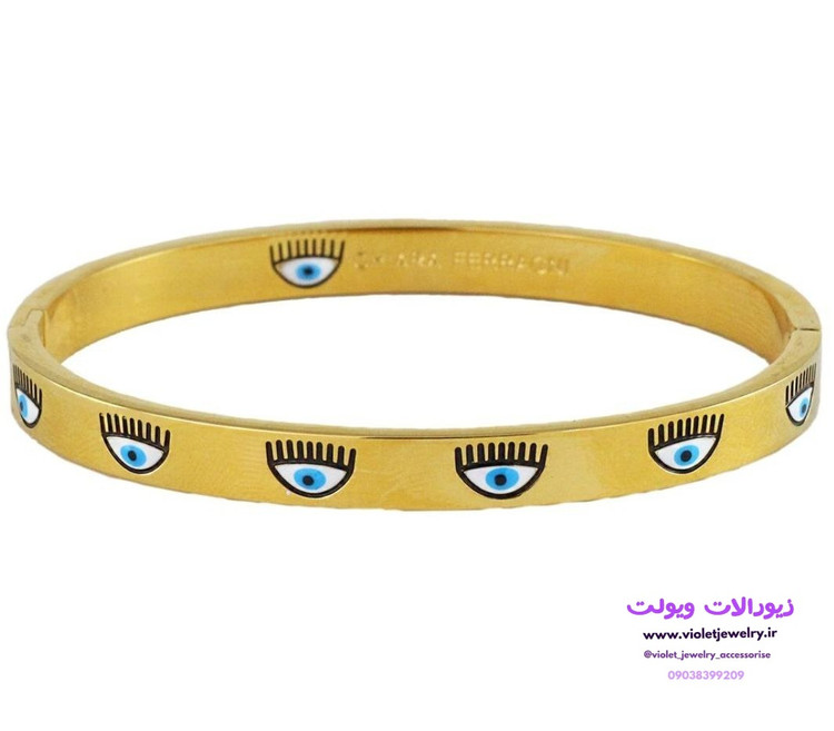 دستبند النگویی بنگل استیل طلایی طرح چشم برند ysx کد ۱۳۰۰