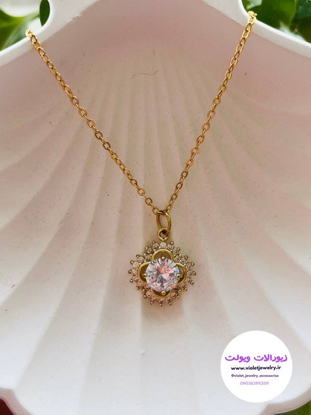 گردنبند دخترانه گل نگین دار طلایی جنس استیل کد ۱۲۱۸۴