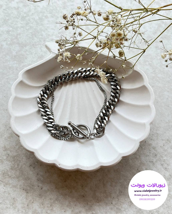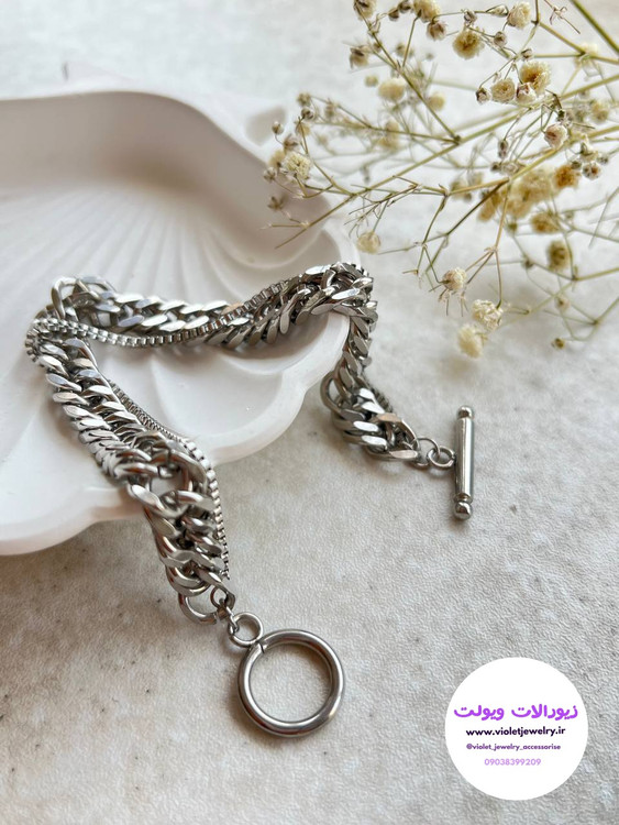 دستبند اسپرت پسرانه و دخترانه جنس استیل رنگ ثابت با دو رنگ سیلور و گلد کد ۱۳۹۵