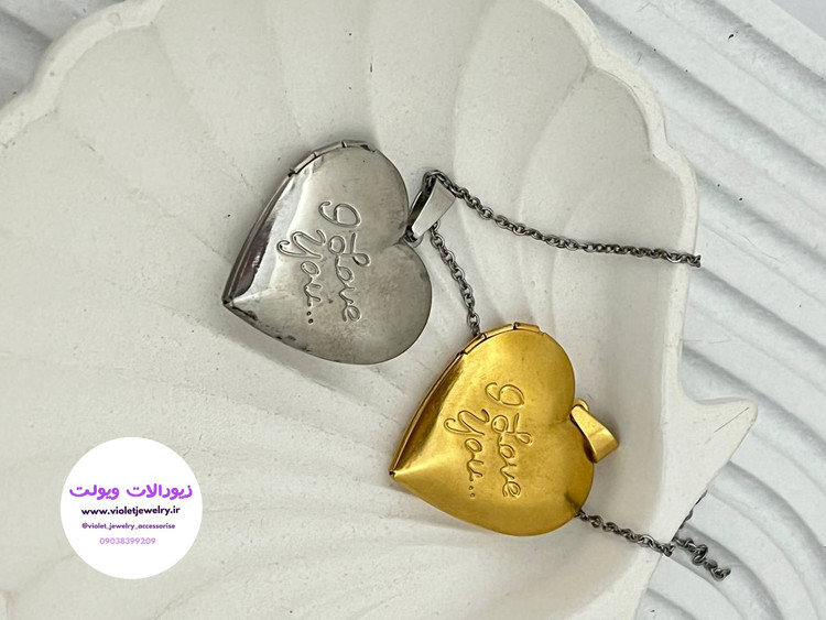 لاکت جاعکسی طرح قلب طلایی و نقره ای جنس استیل کد ۹۹۱۰۶