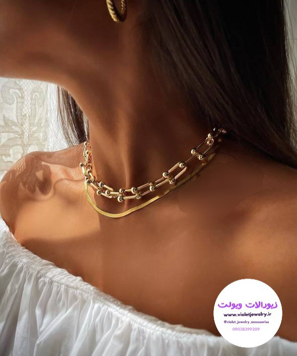 گردنبند تیفانی و ماری طلایی جنس استیل کد ۱۲۲۸