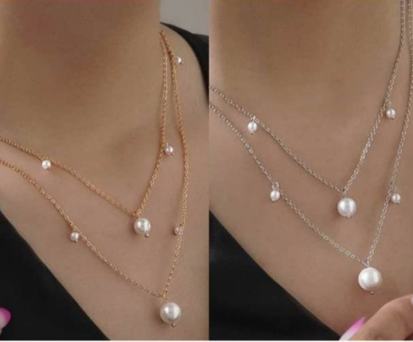 گردنبند مرواریدی استیل طلایی و نقره ای کد ۱۲۲۰۵