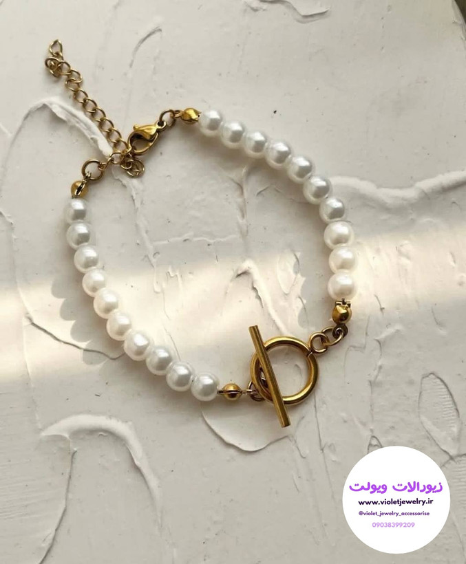 دستبند و گردنبند زنانه مرواریدی با قفل تی کد ۱۴۰۲۴
