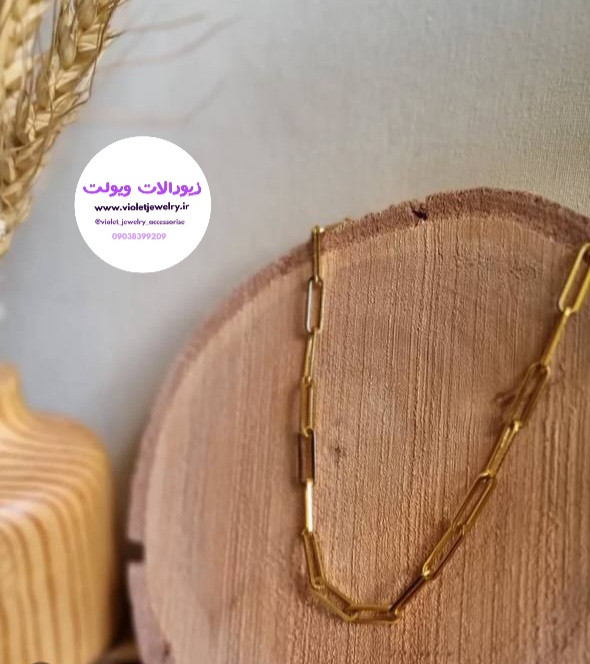 گردنبند زنجیر آجری طلایی استیل رنگ ثابت