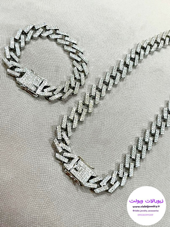 ست کارتیرفول نگین دار گردنبند و دستبند با قفل کوبائی