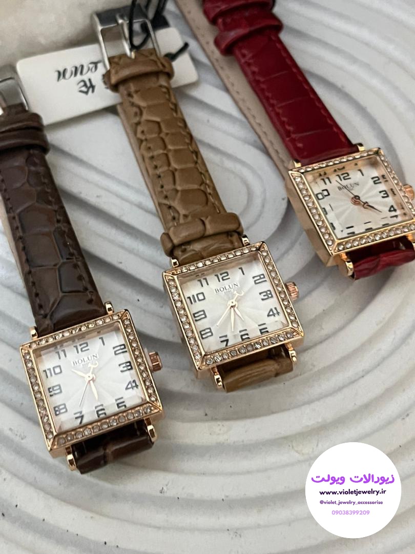 ساعت مچی صفحه مربعی دورنگین دارای رنگبندی