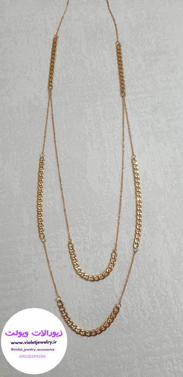 گردنبند رولباسی بلند کارتیر دو ردیفه مجلسی که کاری بسیار شیک و بادوام و زیبا هستش بلندی گردنبند اول 70 سانت و دومی ۹۵ سانت هستش و جنس کار کاملا استیل رنگ ثابت هستش که با خیال راحت چندسال استفاده میکنین