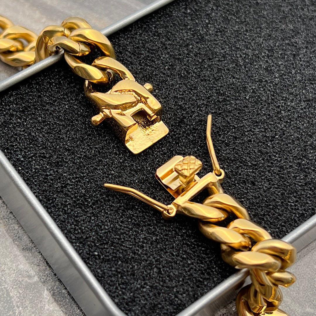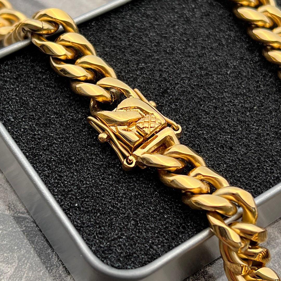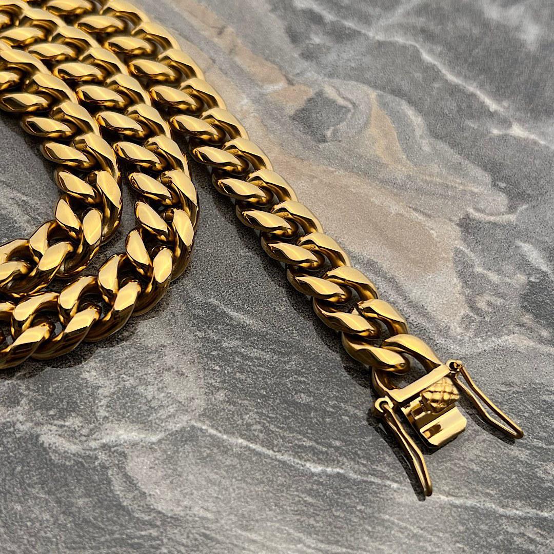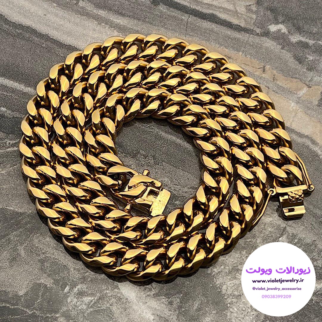 گردنبند کارتیر قفل کوبایی جنس استیل رنگ طلایی