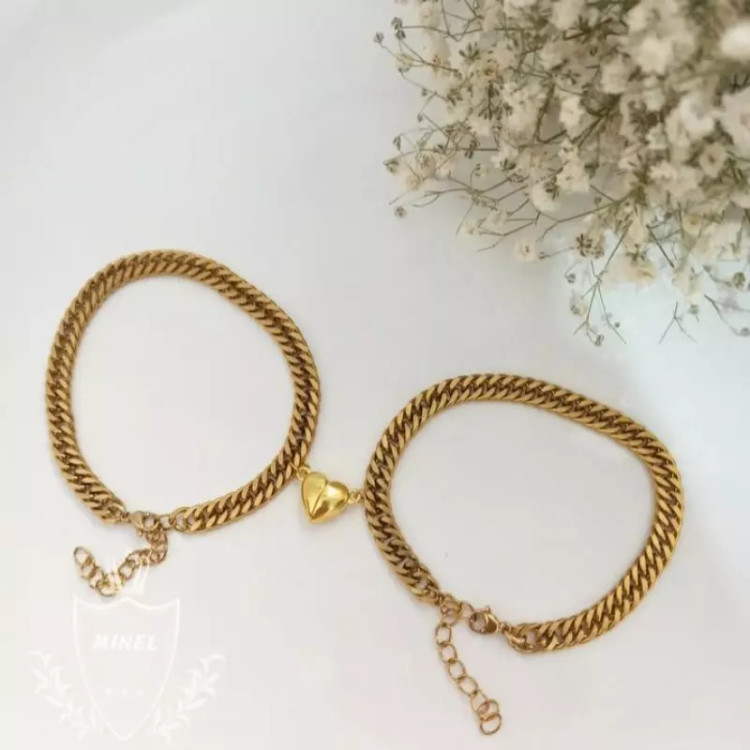 ست دستبند کارتیر دوبل با مگنتی قلبی استیل رنگ ثابت کد ۹۰۰۸