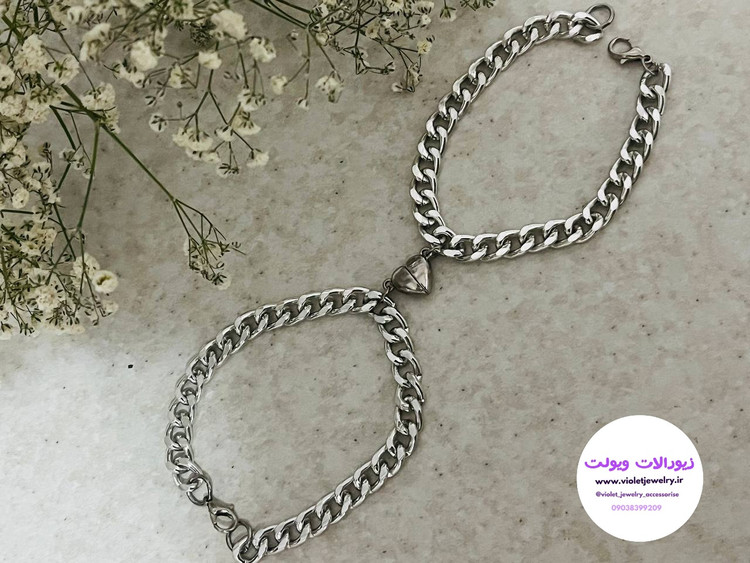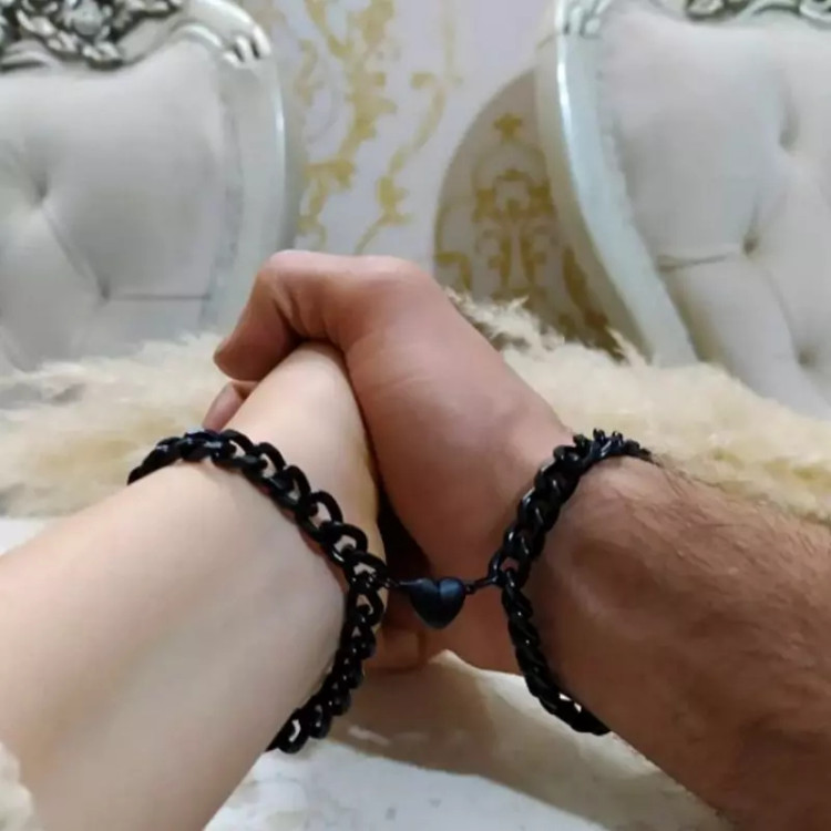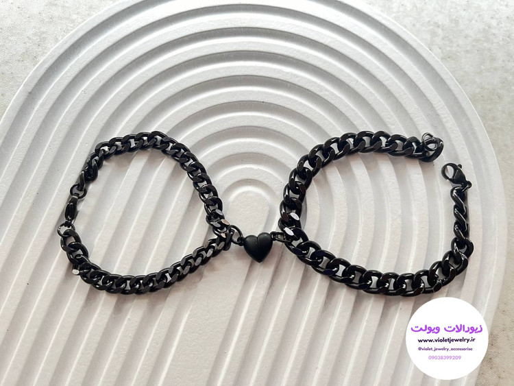ست دستبند دوتایی دستبند دوتایی با مگنت قلبی مشکی ترند سال رنگ ثابت و جنس عالی