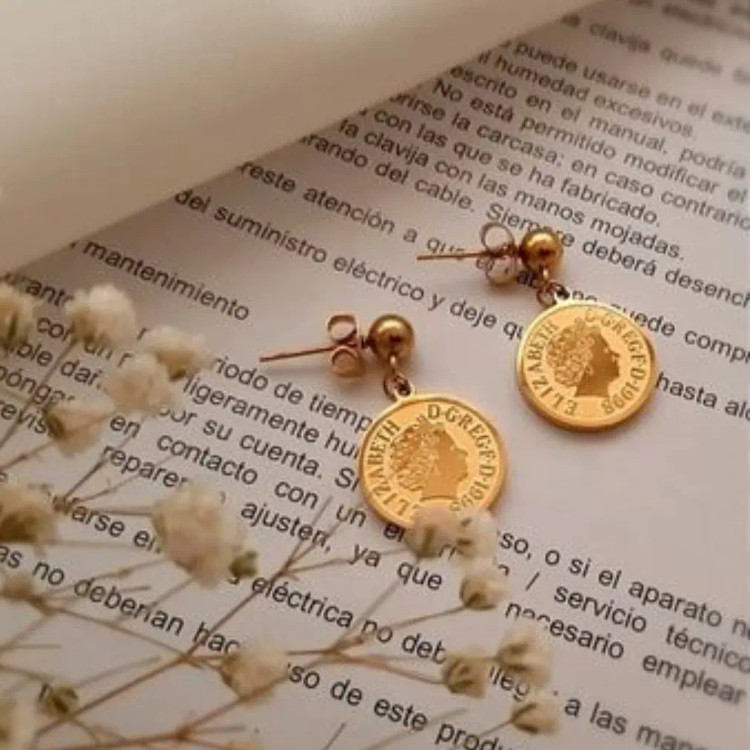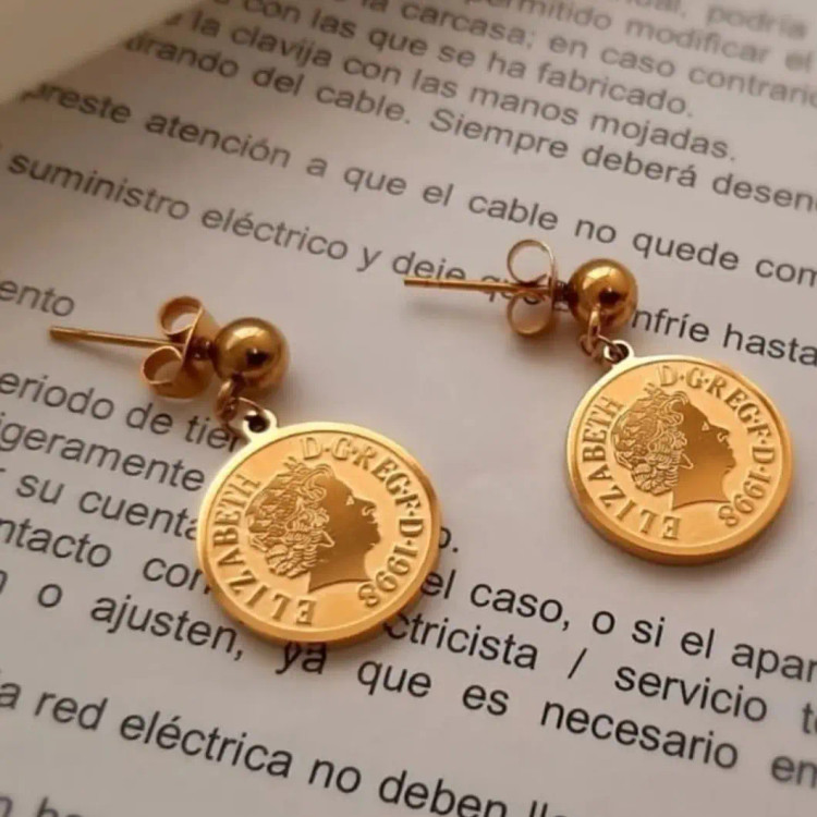 گوشواره استیل زنانه طرح سکه الیزابت (ویولت گالری) کد ۱۱۰۸