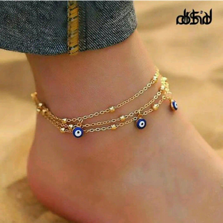 پابند زنانه زنجیر توپی و آویز چشم نظر جنس استیل (ویولت گالری) کد ۷۰۷۸