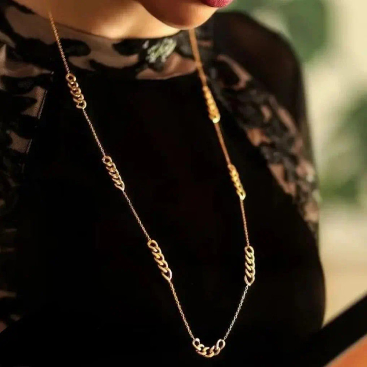 گردنبند رولباسی زنانه طلایی جنس استیل رنگ ثابت فوقالعاده شیک برای میهمانی و مجالس