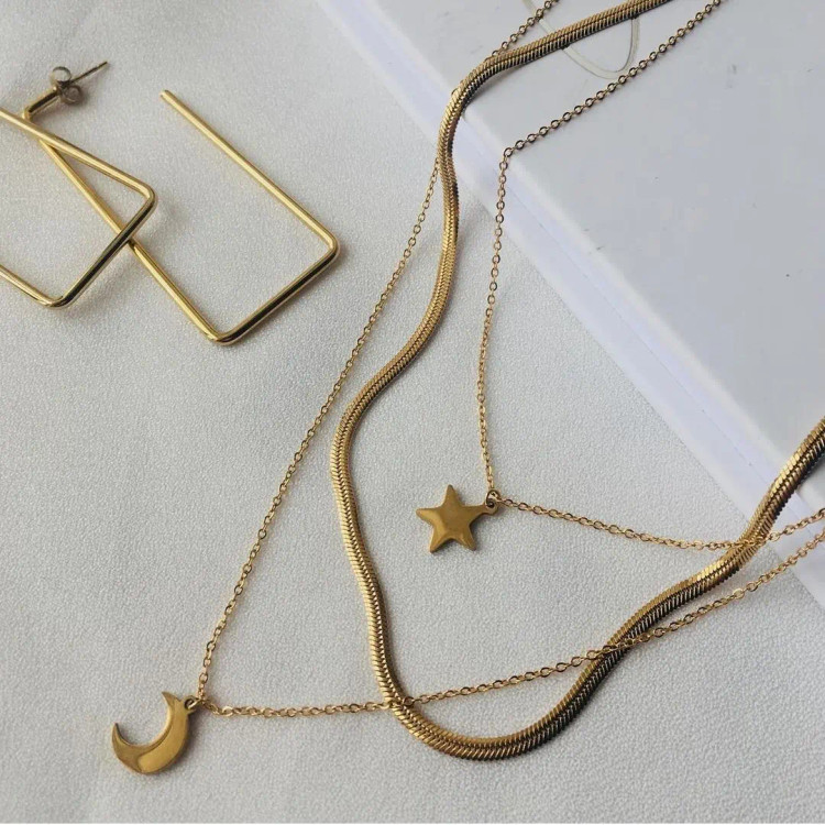 گردنبند استیل ماری و آویز ماه و ستاره سه لاین کد ۱۲۶۰