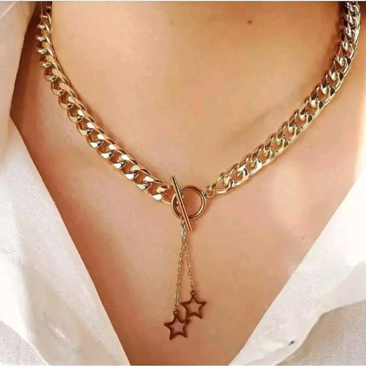 گردنبند خیلی شیک کارتیر با آویز ستاره جنس کار تمام استیل با ضمانت رنگ و کیفیت دستساز سایز و اندازه ی کار طبق سلیقه مشتری امکان تغییر مدل طبق سلیقه مشتری امکان ساخت دستبند و انگشتر و گوشواره مشابه و سفارش ست کامل امکان حذف ستاره ها و سفارش گردنبند ساده برا راهنمایی بیشتر پیام بدین در خدمتم🌹 ❌عکس دوم ، طرحای موجود آویزها هست که میتونین به سلیقه خودتون انتخاب کنین