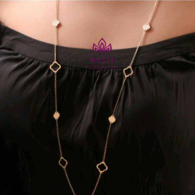 گردنبند بلند رولباسی مجلسی یا رومانتویی ونکلیف ظریف جنس استیل طلایی (ویولت گالری) کد۴۰۰۳