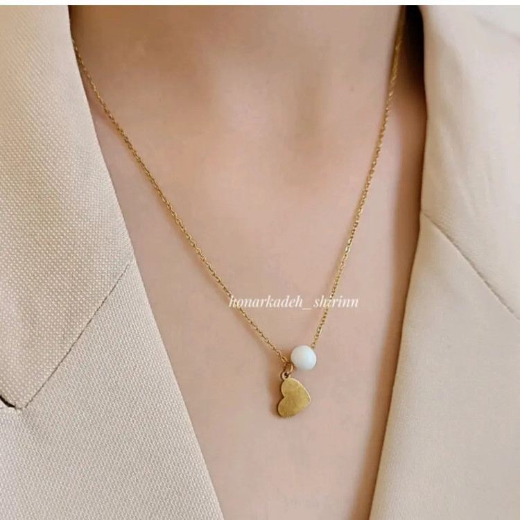 گردنبند قلب ظریف استیل رنگ ثابت با مروارید زنانه ( ویولت گالری) کد ۱۲۷۳