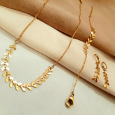 ست گردنبند دستبند گوشواره گندمی استیل طلایی(ویولت گالری) کد ۱۹۳۵