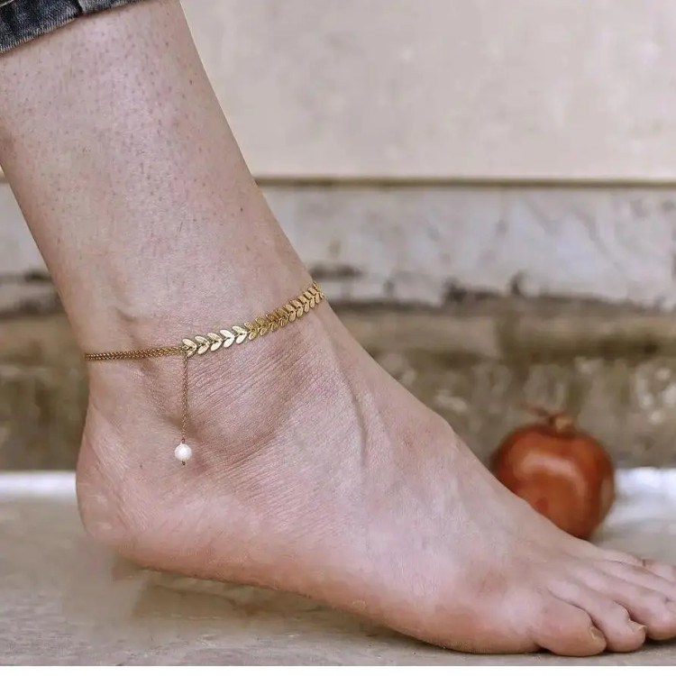 پابند استیل ظریف تیغ ماهی یا گندمی با آویز مروارید (ویولت گالری) کد ۷۰۸۵