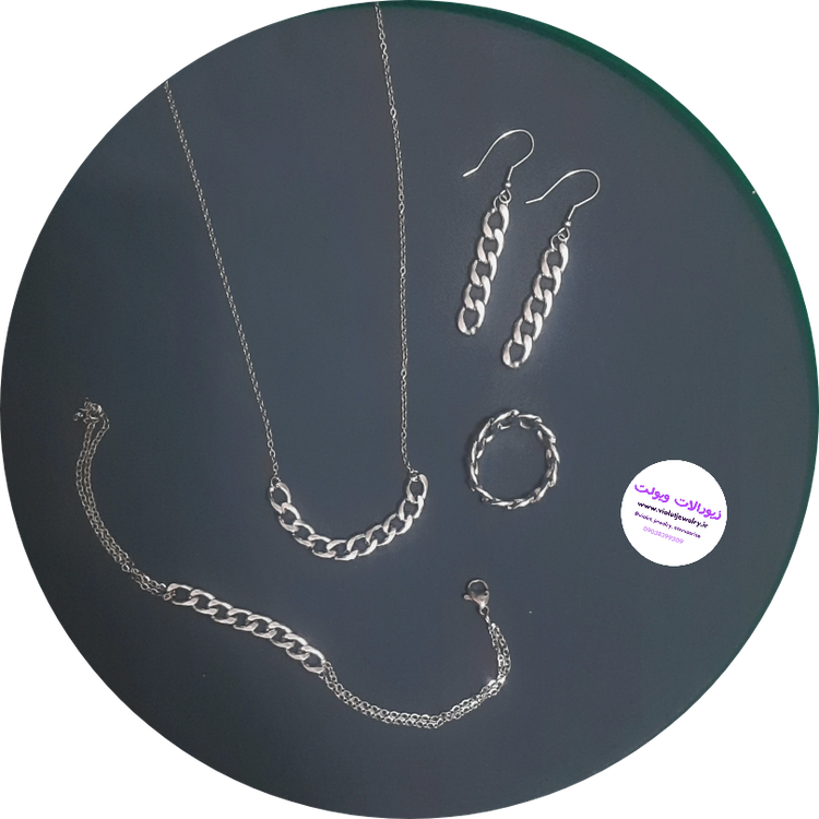 ست گردنبند دستبند انگشتر گوشواره استیل کارتیر رنگ ثابت (ویولت گالری) کد ۱۹۵۳