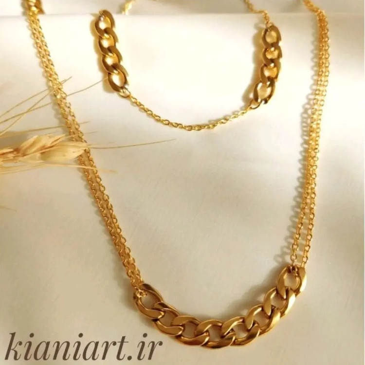 نیمست گردنبند دستبند ترکیب کارتیر و زنجیر ساده جنس استیل (ویولت گالری) کد ۱۹۵۹