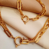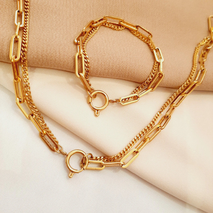 ست گردنبند دستبند زنجیر استیل دولاین ترکیبی با قفل ملوانی (ویولت گالری) کد ۱۹۶۲