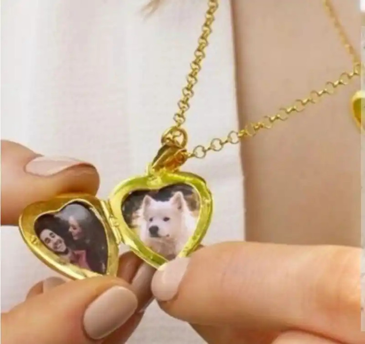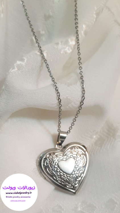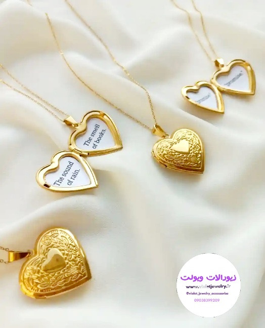 لاکت (جاعکسی)،(،جای دعا) مدل قلب جنس استیل رنگ طلایی همراه با زنجیر طلایی استیل ساده