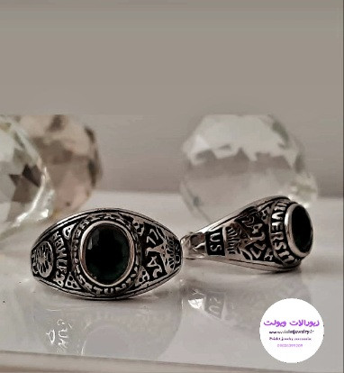 انگشتر مردانه استیل نقره ای سنگ یشم سیاه قلم کد ۵۰۰۲۹