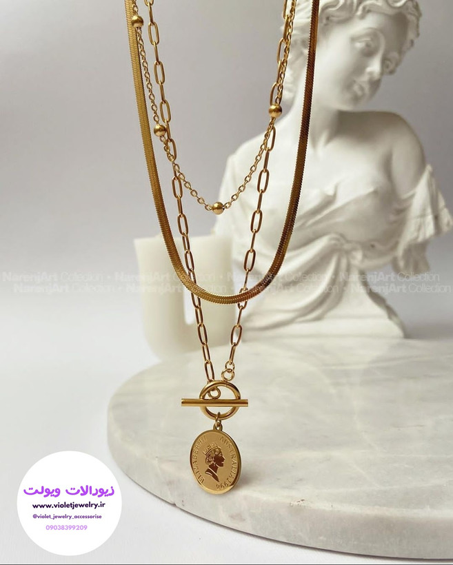 گردنبند سه لاین ماری توپی آجری سکه ای الیزابت زنانه استیل رنگ ثابت کد ۱۲۱۲۵