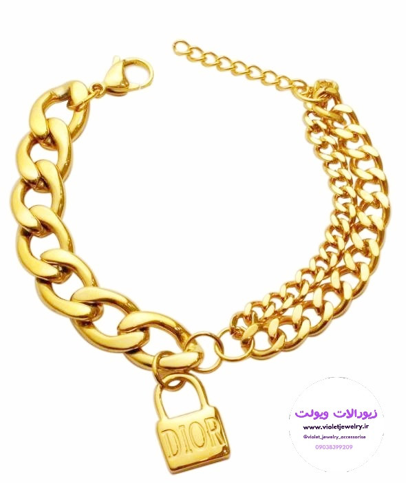 دستبند اسپرت استیل طلایی و نقره ای رنگ ثابت کد ۱۳۷۶