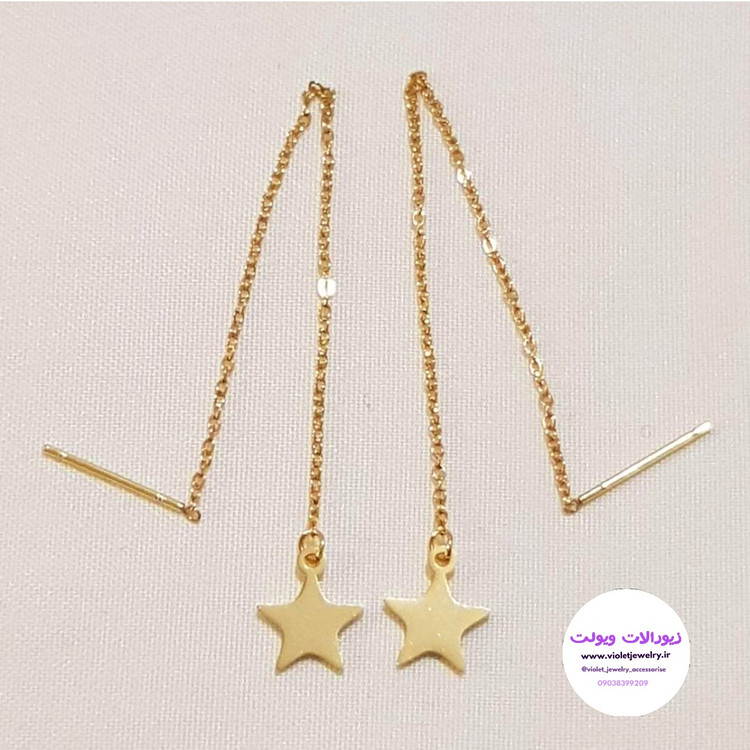 گوشواره بخیه طلایی و نقره ای جنس استیل مدل ستاره گد ۱۱۳۴