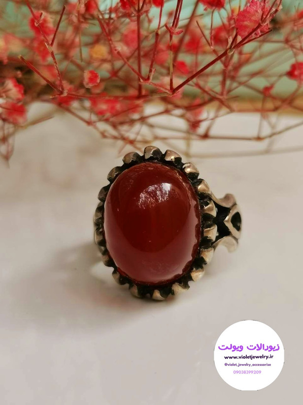 انگشتر نقره مردانه ایتالیایی عقیق قرمز سنگ اصلی وزن ۱۴.۸ کد ۳۱۳