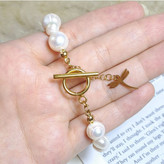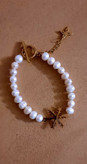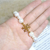 دستبند زنانه مرواریدی جنس مروارید پرورشی با پلاک استیل طدح برفی کد ۱۳۷۷